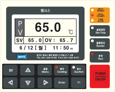 - PV : 현재 온도 표시창 (금형회수 온도)