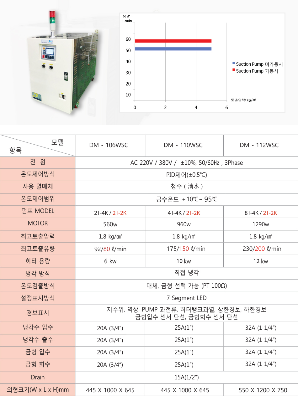 급속 온·냉수 SUCTION 모델 최고 95℃ 용 사양
